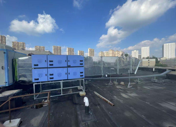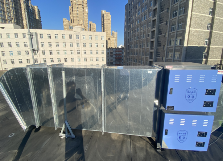 图为蒲河校区食堂南侧挡口油烟净化器安装竣工效果