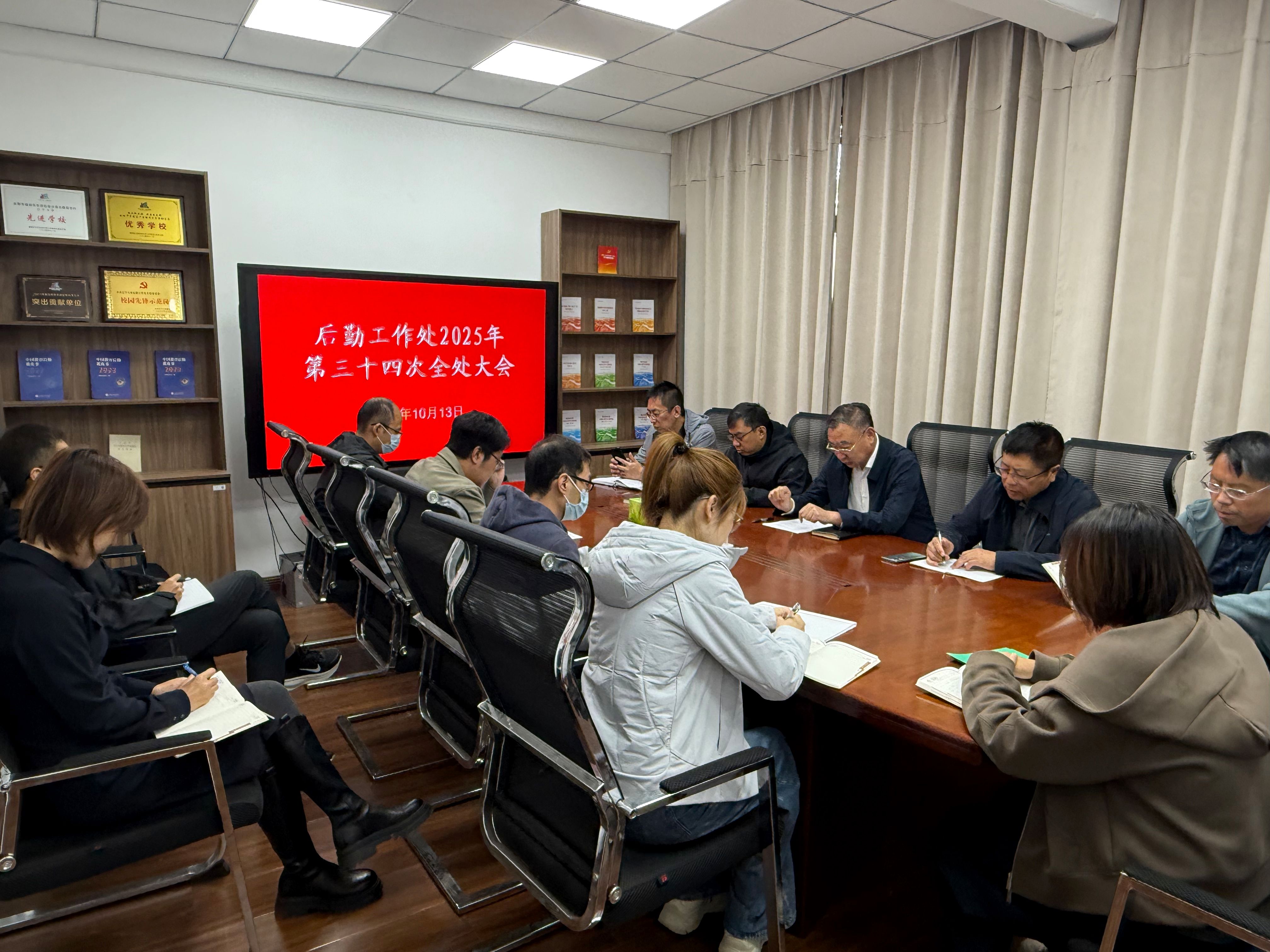10月13日上午,后勤工作处在崇山校区机关楼113室召开2025年第34次全处工作会议,处内全体人员参加会议,后勤工作处处长黄大军主持会议。