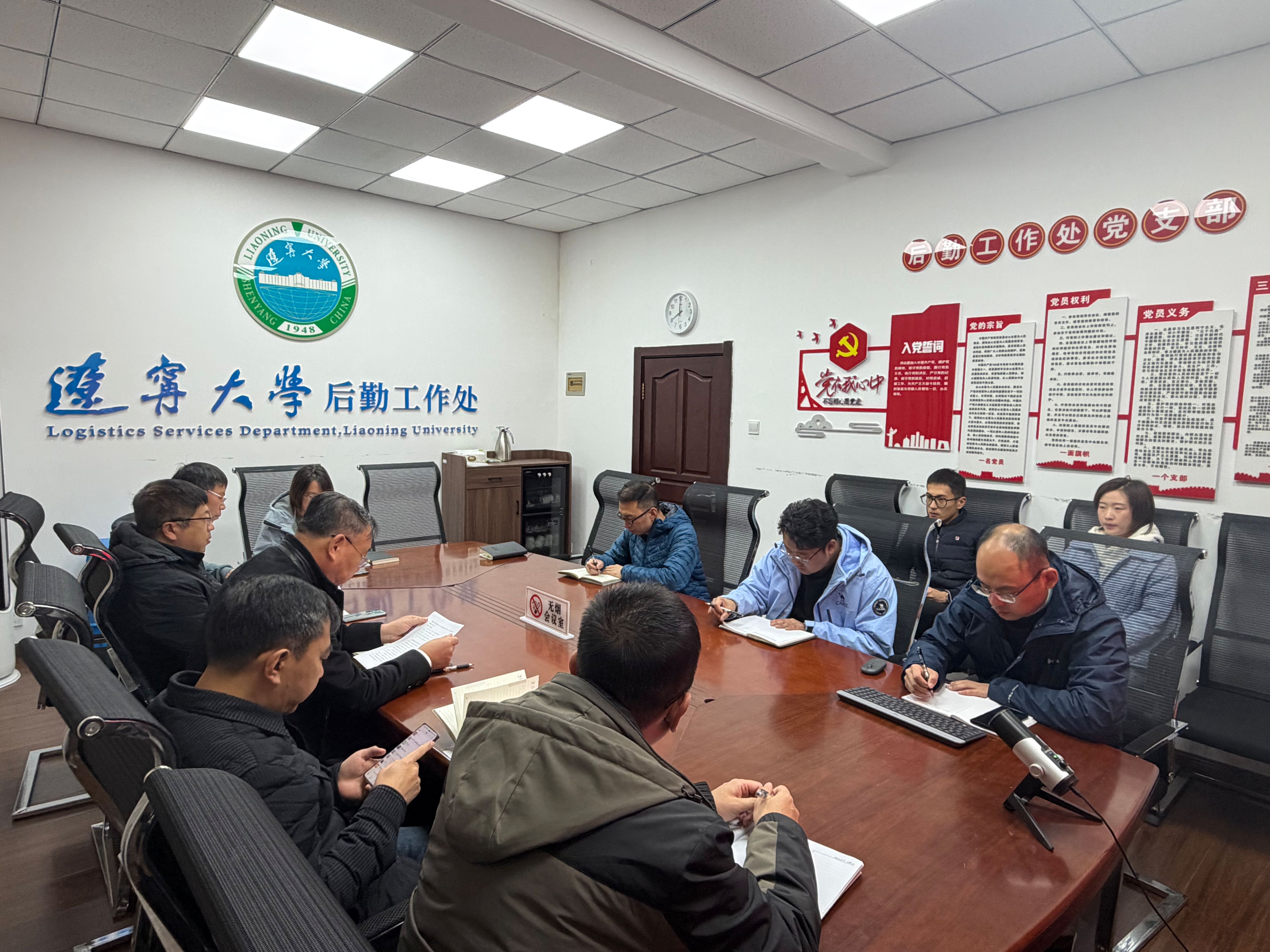 会上,黄大军处长提出了本周16项工作安排,对继续推进省发改委对《辽宁大学电力增容改造项目可研报告》评审并进行现场踏勘、持续推进辽宁大学后勤智慧服务管理系统(二期)项目建设、加强对蒲河及崇山校区三个供热公司供暖运行情况监管工作,确保供暖温度让师生满意、开展《辽宁大学2026年专项维修计划》调研、继续调研并编制学校公用房管理细则、做好今冬除雪的各项准备工作、继续推进崇山校区校门外安装指引牌的设计方案、继续论证《辽宁大学拟购置中铁综合楼用作高校学生宿舍项目》、论证蒲河校区校部办公楼一楼办公大厅综合改造项目及现在大厅办公单位临时搬迁到经济学部教学科研楼一楼大厅办公方案设计等工作进行了部署,全处同志汇报了10月27日至11月2日的工作情况,反馈了当前工作中遇到的问题及建议。