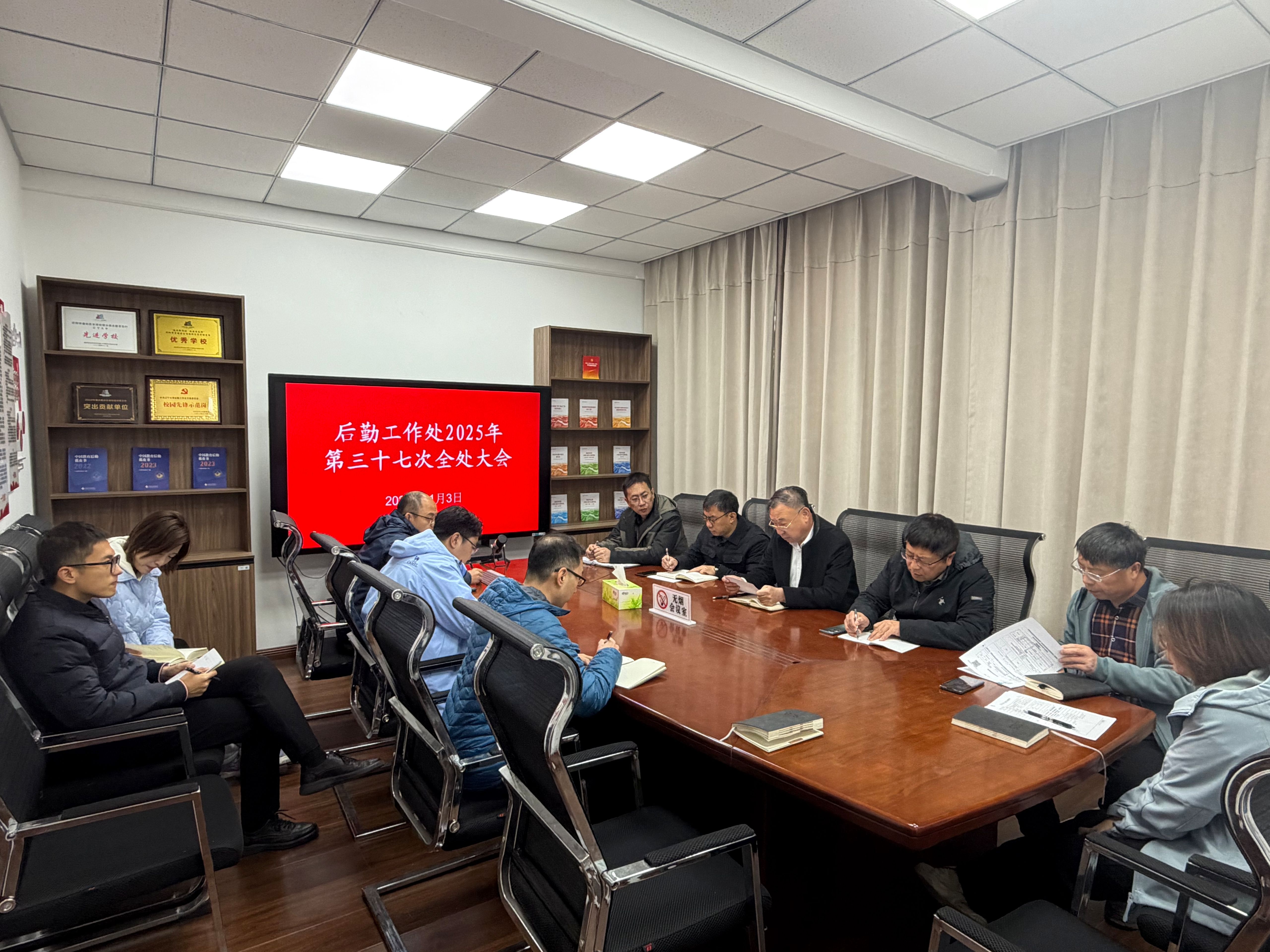 11月3日上午,后勤工作处在崇山校区机关楼113室召开2025年第37次全处工作会议,处内全体人员通过线上线下形式参加会议,后勤工作处处长黄大军主持会议。