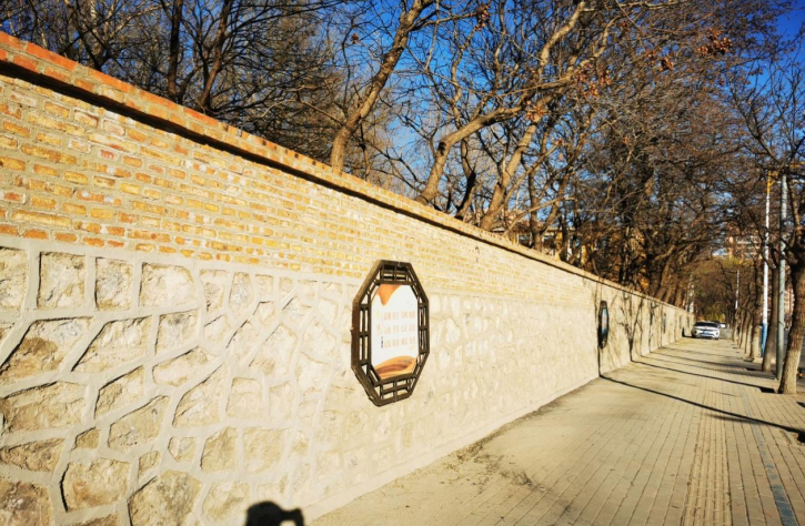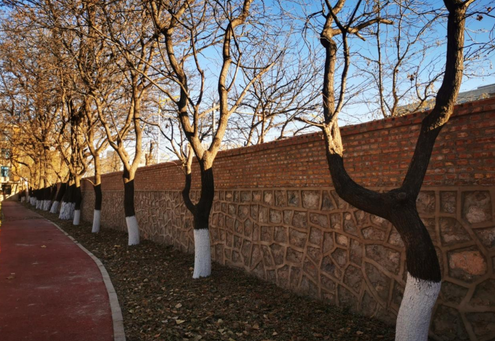 图为武圣校区精学楼外侧围墙改造后竣工效果二