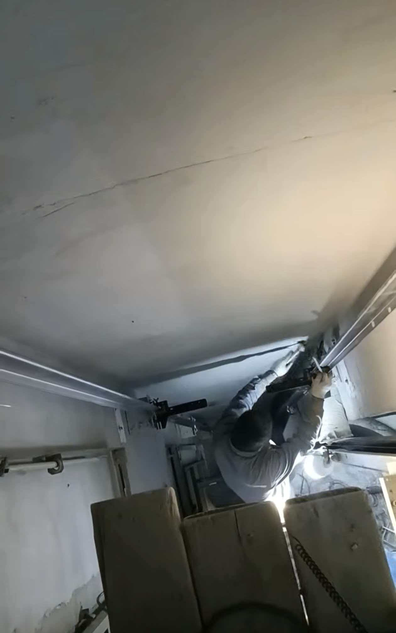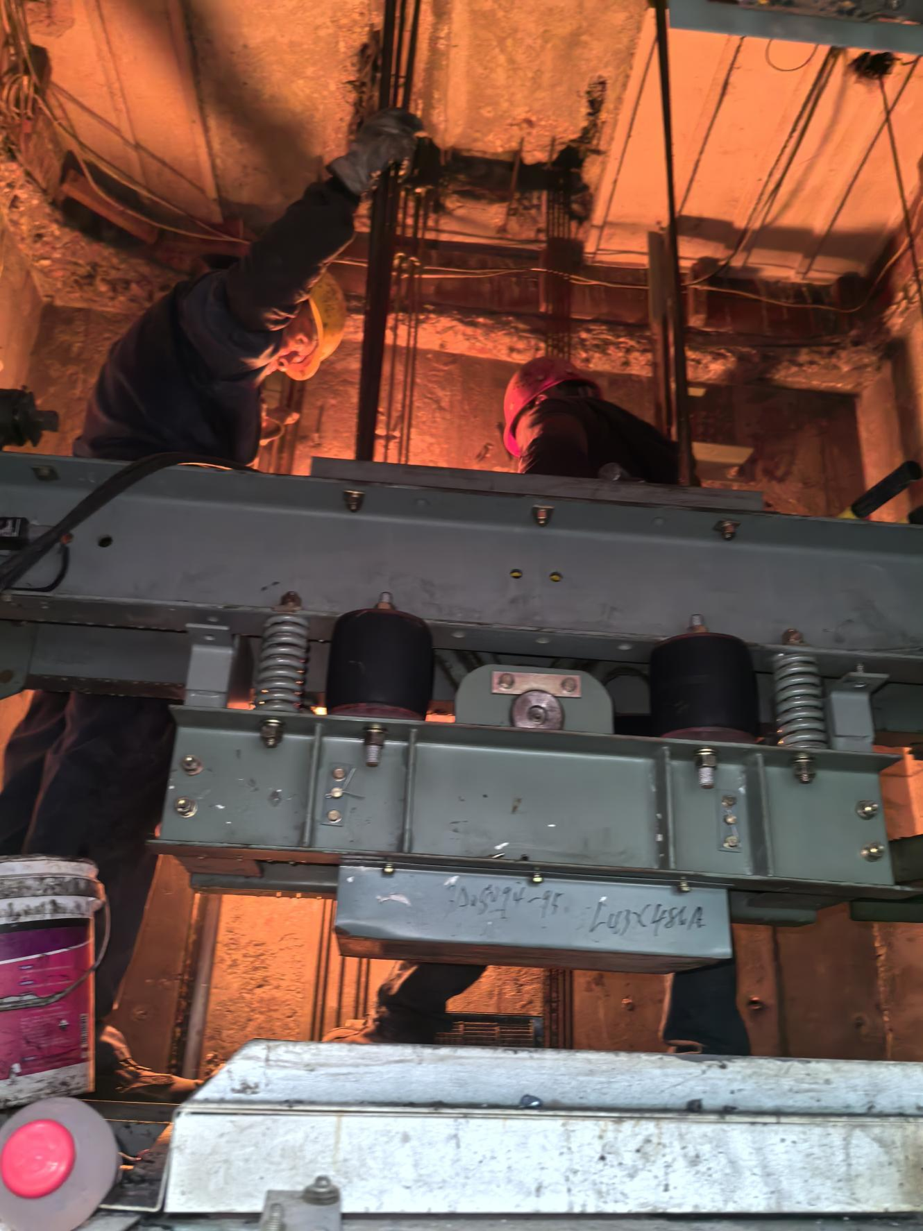 图为蒲河校区文华楼电梯导轨及钢丝绳安装作业