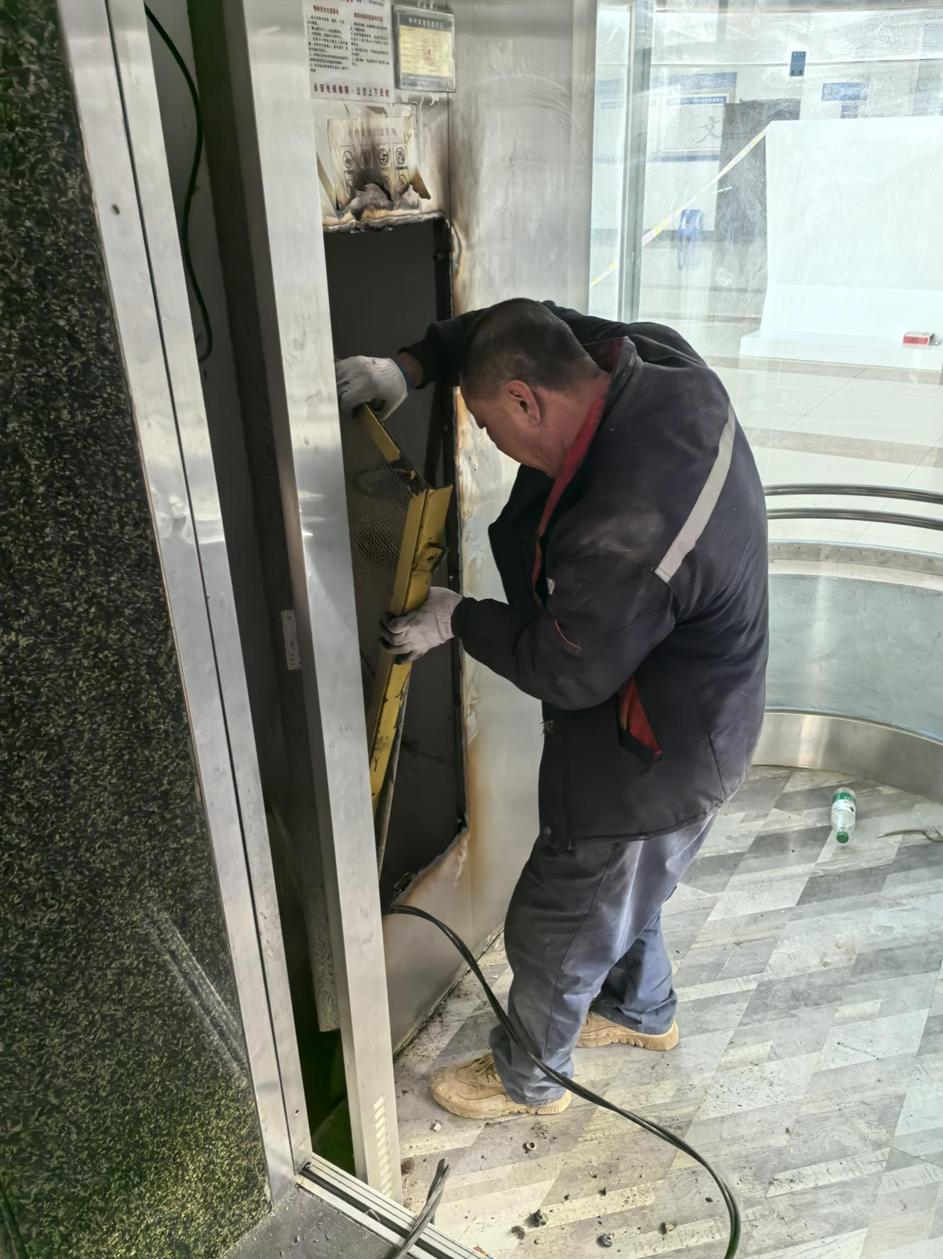 图为崇山校区蕙星楼西侧电梯更换竣工效果