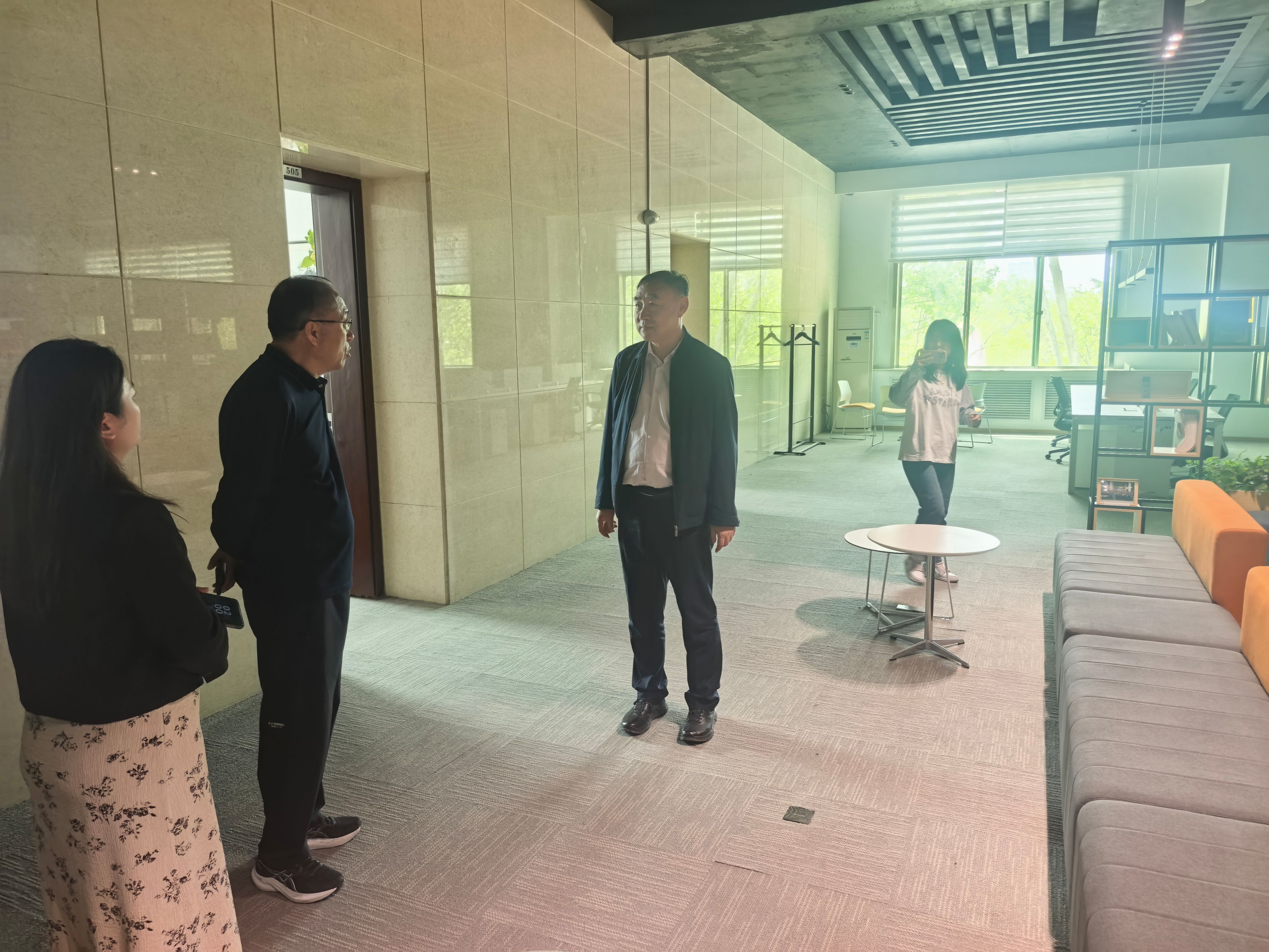图为陕西省教育后勤协会办公区域实地调研现场