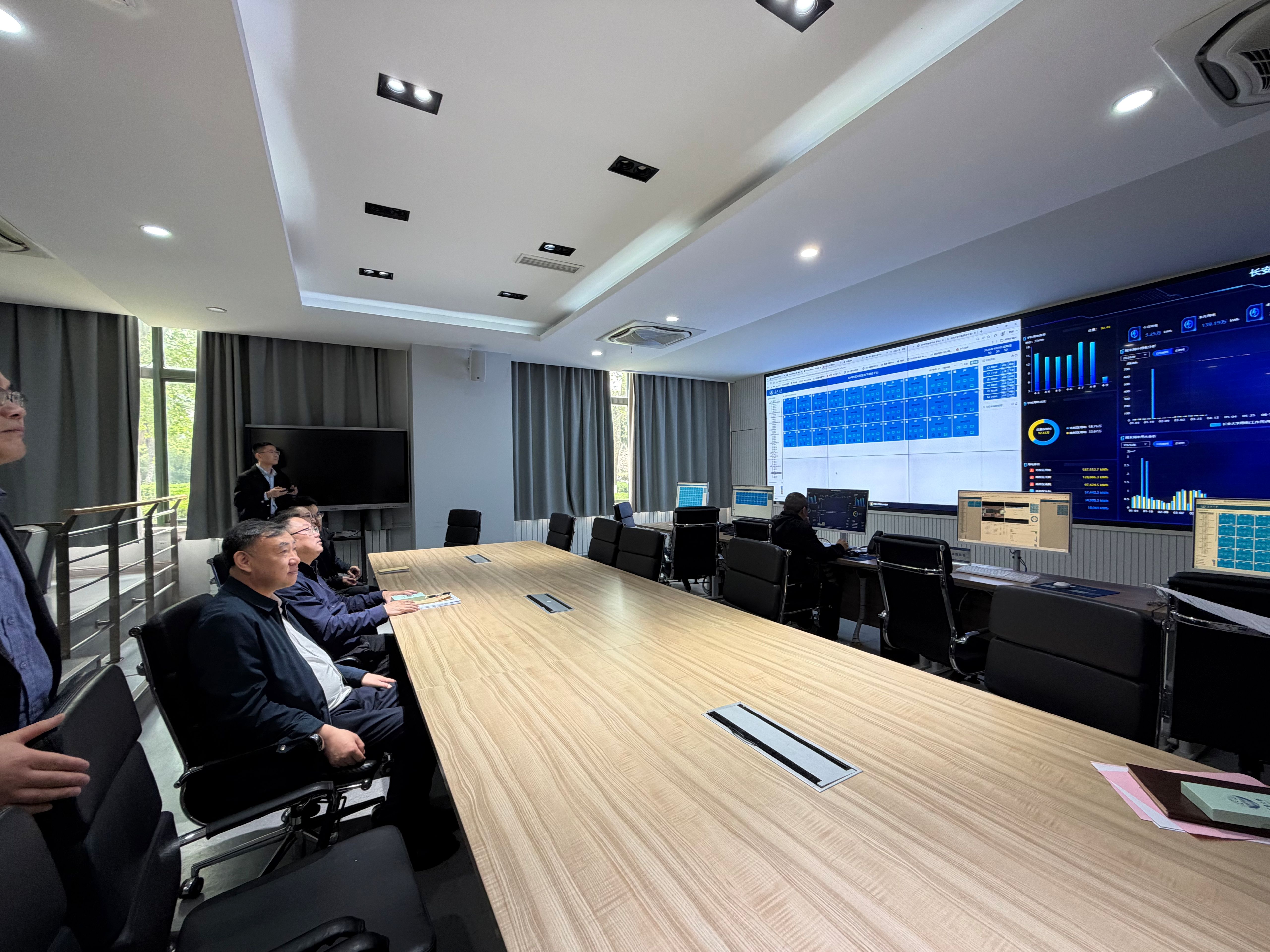 图为长安大学后勤管理数智化驾驶舱实地调研现场