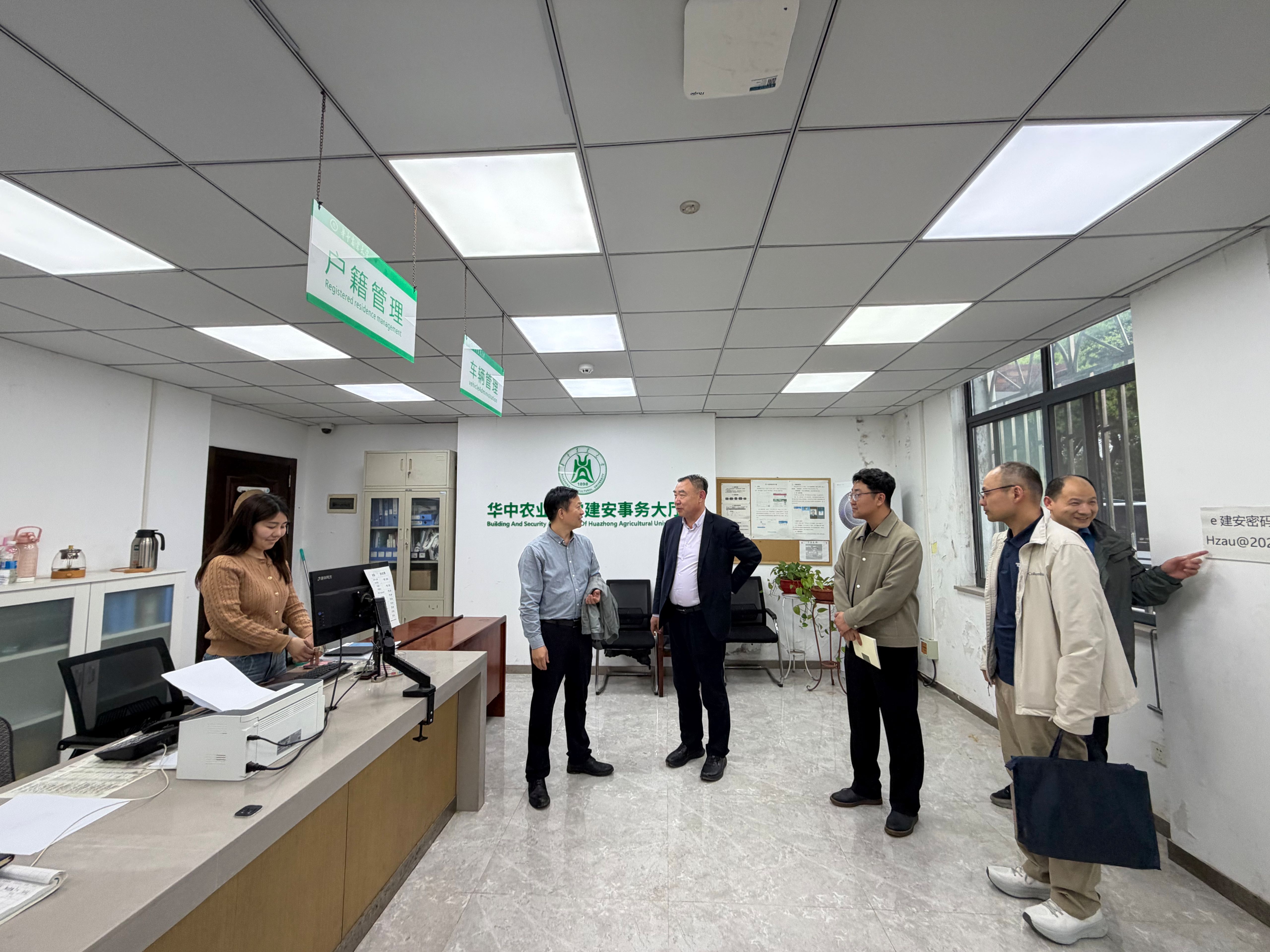 图为华中农业大学建安事务大厅实地调研现场