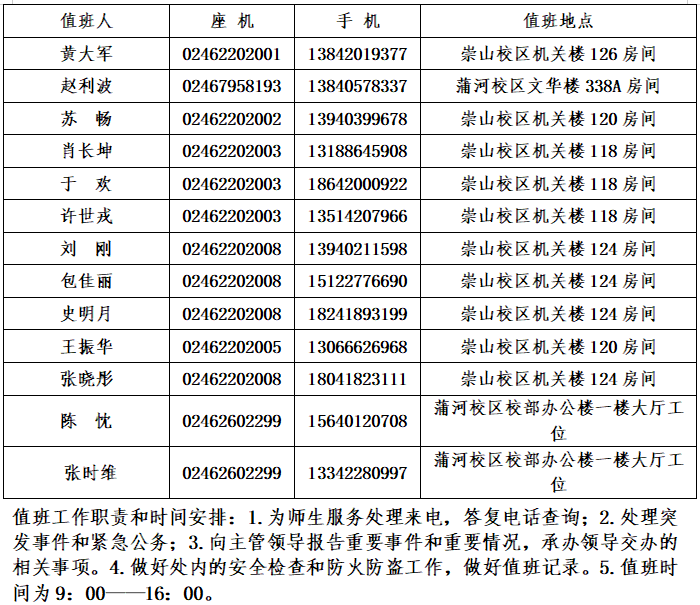后勤工作处关于做好2025年11月份休息日全员值班为师生服务的通知