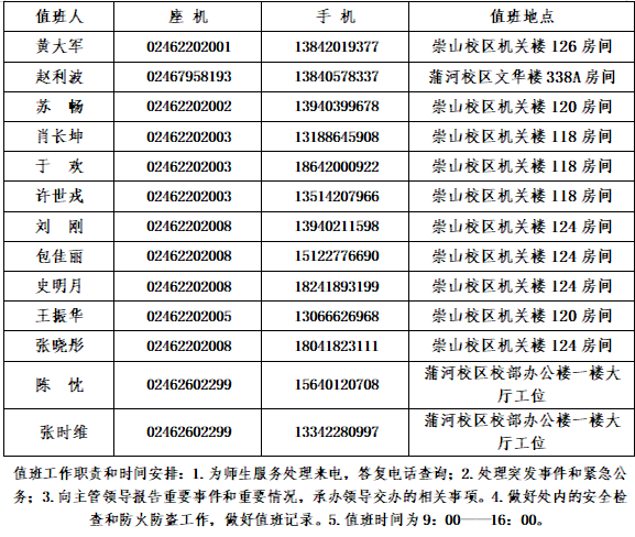 后勤工作处关于做好2026年1月份休息日及寒假全员值班为师生服务的通知
