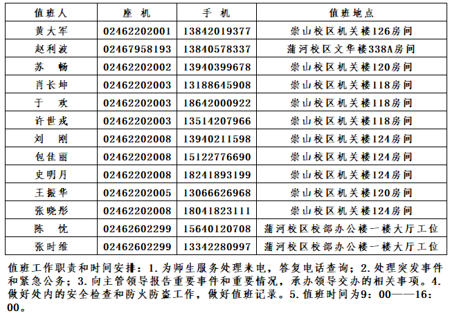 后勤工作处关于做好2026年3月份寒假及休息日全员值班为师生服务的通知